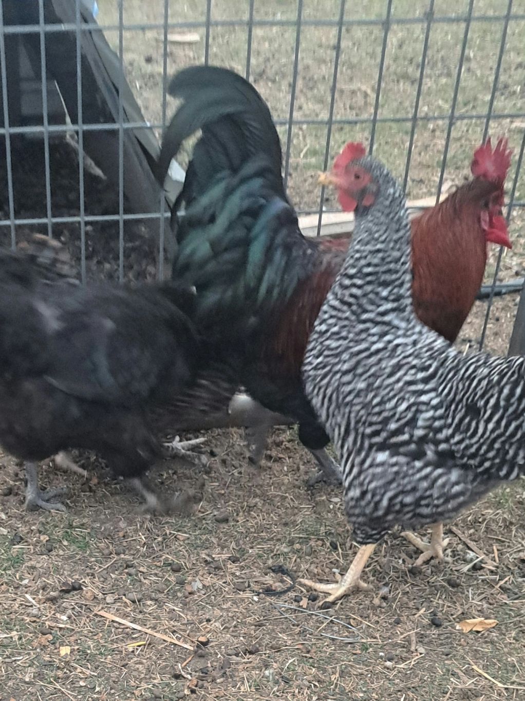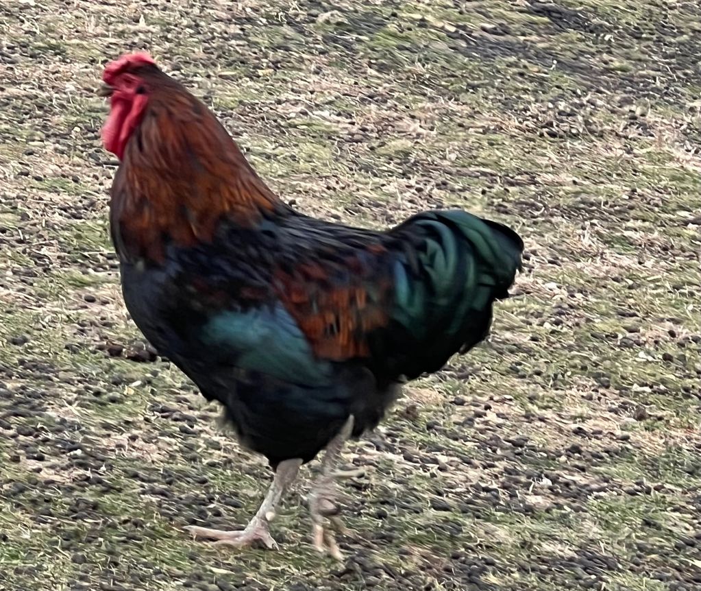 This Rooster is known for its striking black plumage with an iridescent green sheen and fiery copper-colored neck feathers.